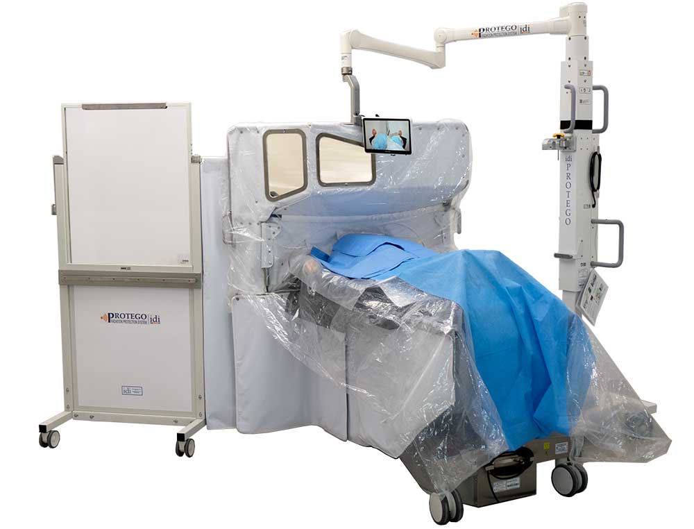 The Protego® System was designed to eliminate the requirement of heavy protective aprons typically worn by Physicians,